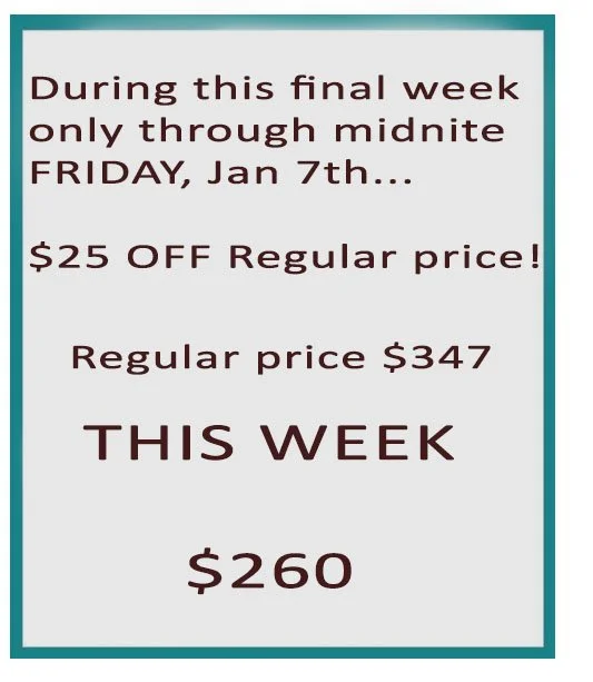Module 1 will be released OFFICIALLY on Monday, January 10th at 7am (Central time). That means, you will receive an email (shortly around that time) with a Link and a Password. This will take you to the welcome page and you will see how it is all laid out. You have 3 Lessons in Module 1 - Mostly introductory type things - and you take your time getting acquainted with the info there. You can download the work pages, the extra info in PDF format and the videos. Yours to KEEP forever.